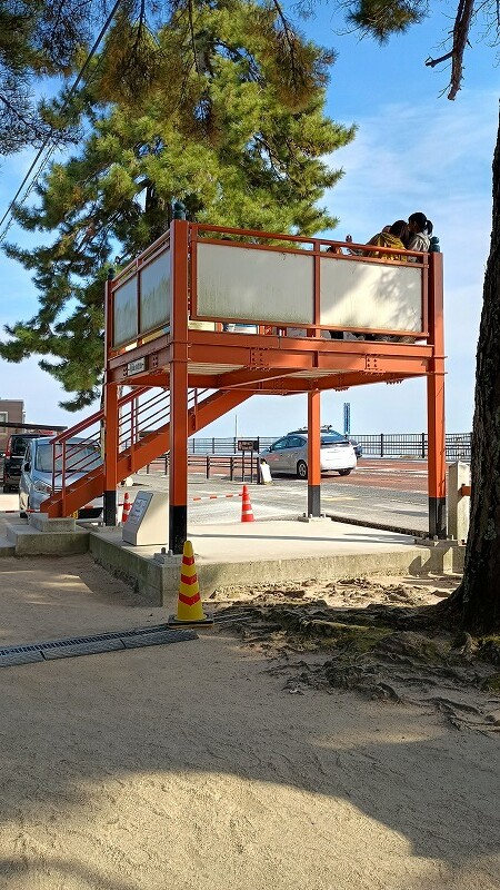 国道161号を横切って鳥居を少しでも近くで見たい人が多く、危険な行動をする方が多かったので、交通、近隣住民に迷惑になってたのを、ニュースで見ました。とても残念なことでしたが、数年前に、展望台が出来て、道路を渡らず、鳥居が見れるようになってました。