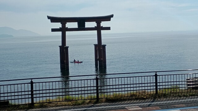 国道161号を走ってると、突然琵琶湖に鳥居があって、昔からの風景で琵琶湖に来たなって思える場所の一つです。