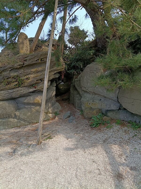 源義経が奥州へ落ち延びる途中、にわか雨の晴れるのを待ったという岩で、地名「雨晴」の由来となったそうです。